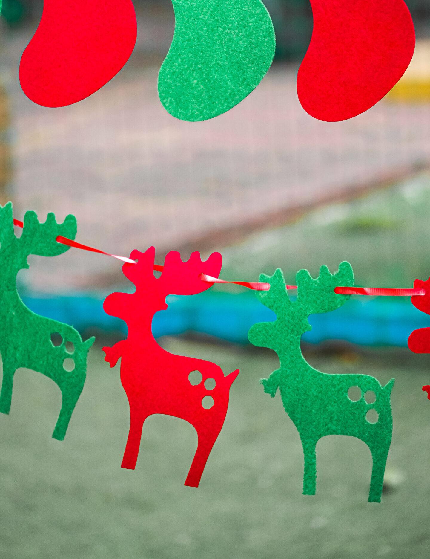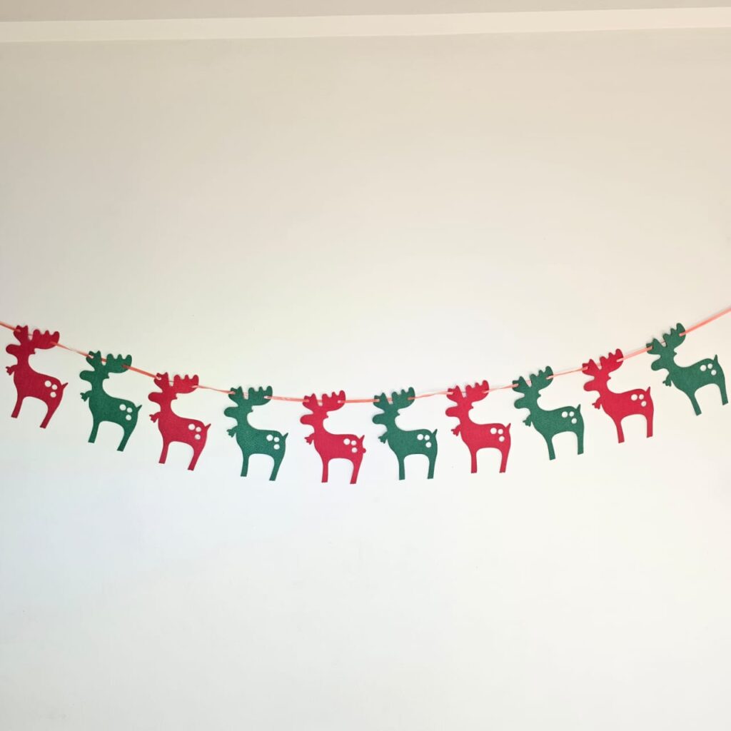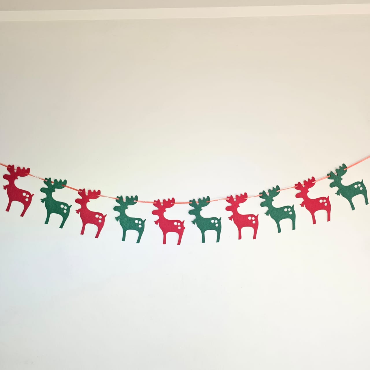Add a touch of nature-inspired charm to your holiday decor with our Sustainable Reindeer Felt Bunting. Featuring classic reindeer silhouettes in a festive color palette, this horizontal banner is a high-quality, eco-conscious alternative to mass-produced plastic tinsel and disposable streamers.