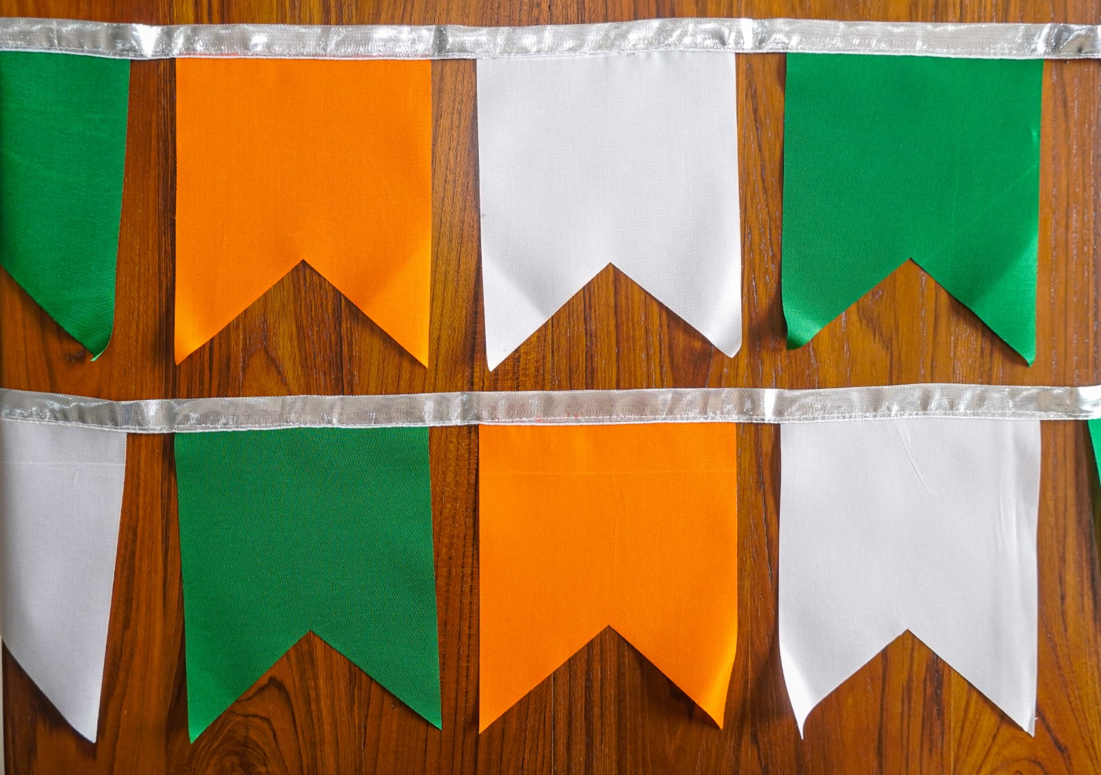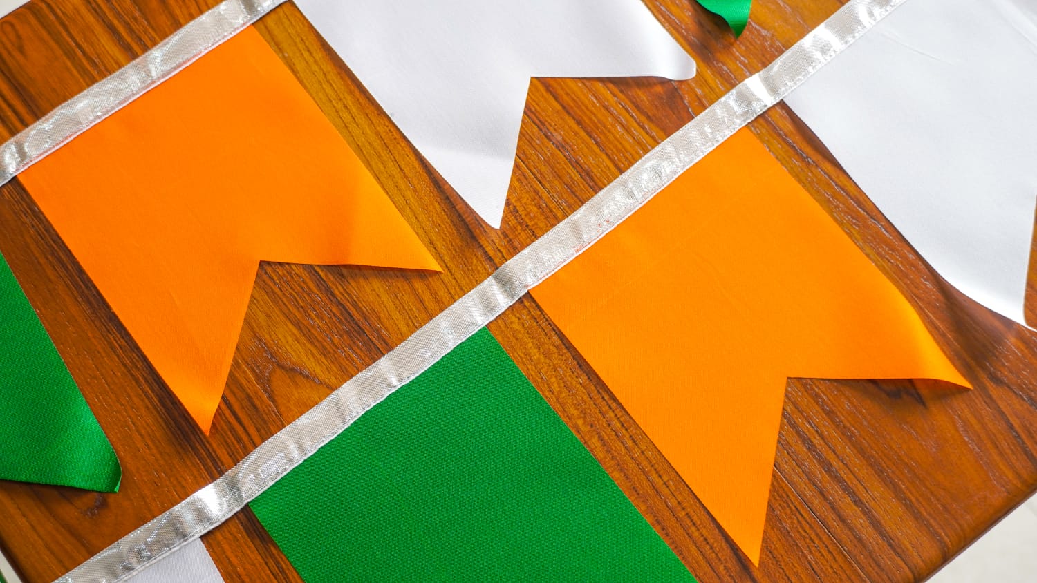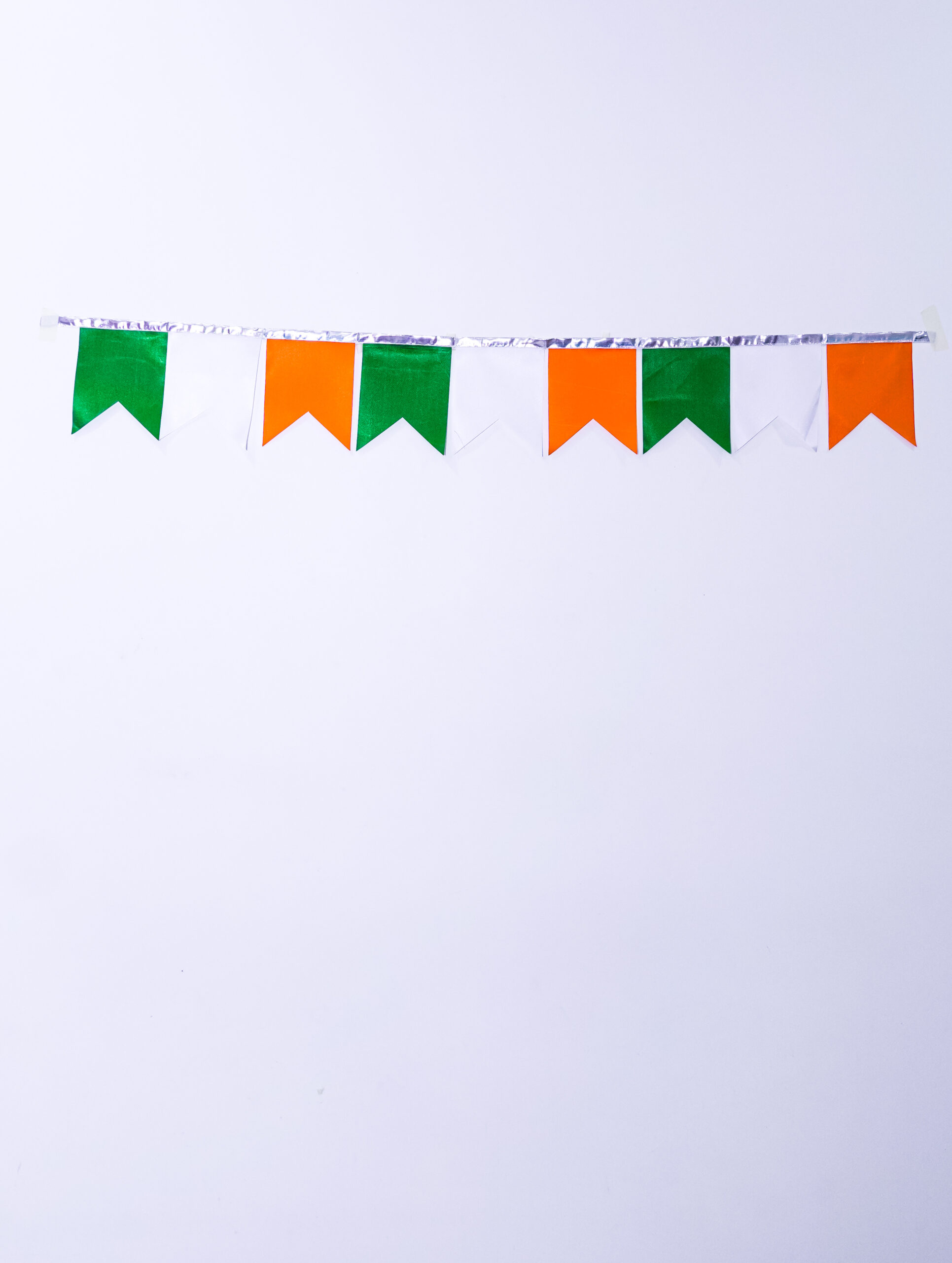 Celebrate national pride with our Sustainable Tri-Color Satin Fabric Bunting, a premium and eco-conscious choice for Independence Day, Republic Day, or any patriotic event. This horizontal banner features the iconic Saffron, White, and Green palette, providing a sophisticated alternative to disposable plastic flags.
