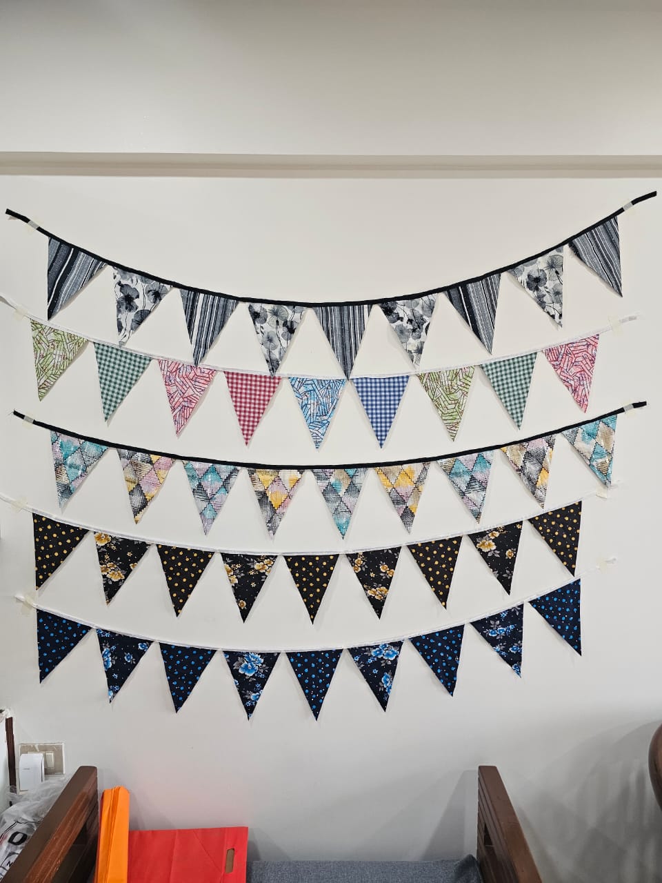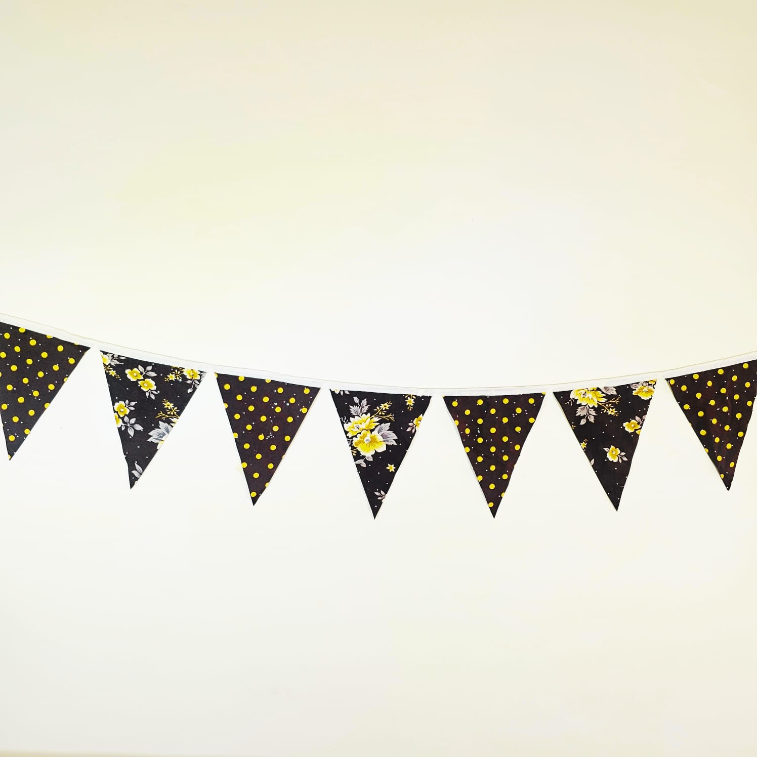 Add a touch of dynamic pattern and color to your next event with our Sustainable Printed Polyester Triangular Bunting. These horizontal banners feature a sophisticated mix of traditional floral and modern polka dot prints, providing a premium, reusable alternative to thin plastic streamers.