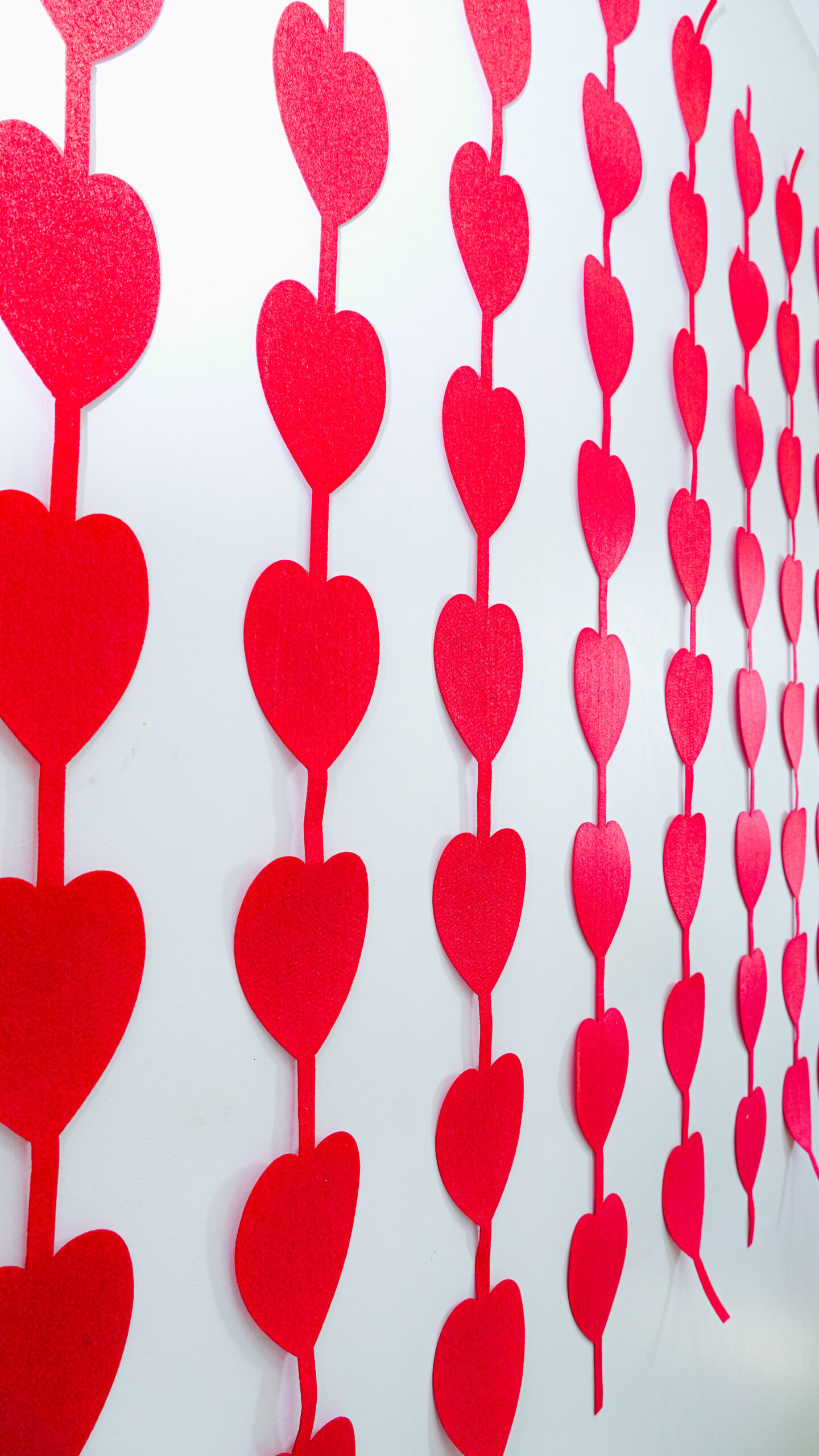 Infuse your next milestone with a sense of warmth and romance using our Sustainable Heart-Shaped Felt Danglers. These deep red, vertical garlands offer a charming and eco-conscious alternative to metallic foil hearts or single-use plastic streamers, making them the perfect choice for anniversaries, Valentine’s Day, or weddings.