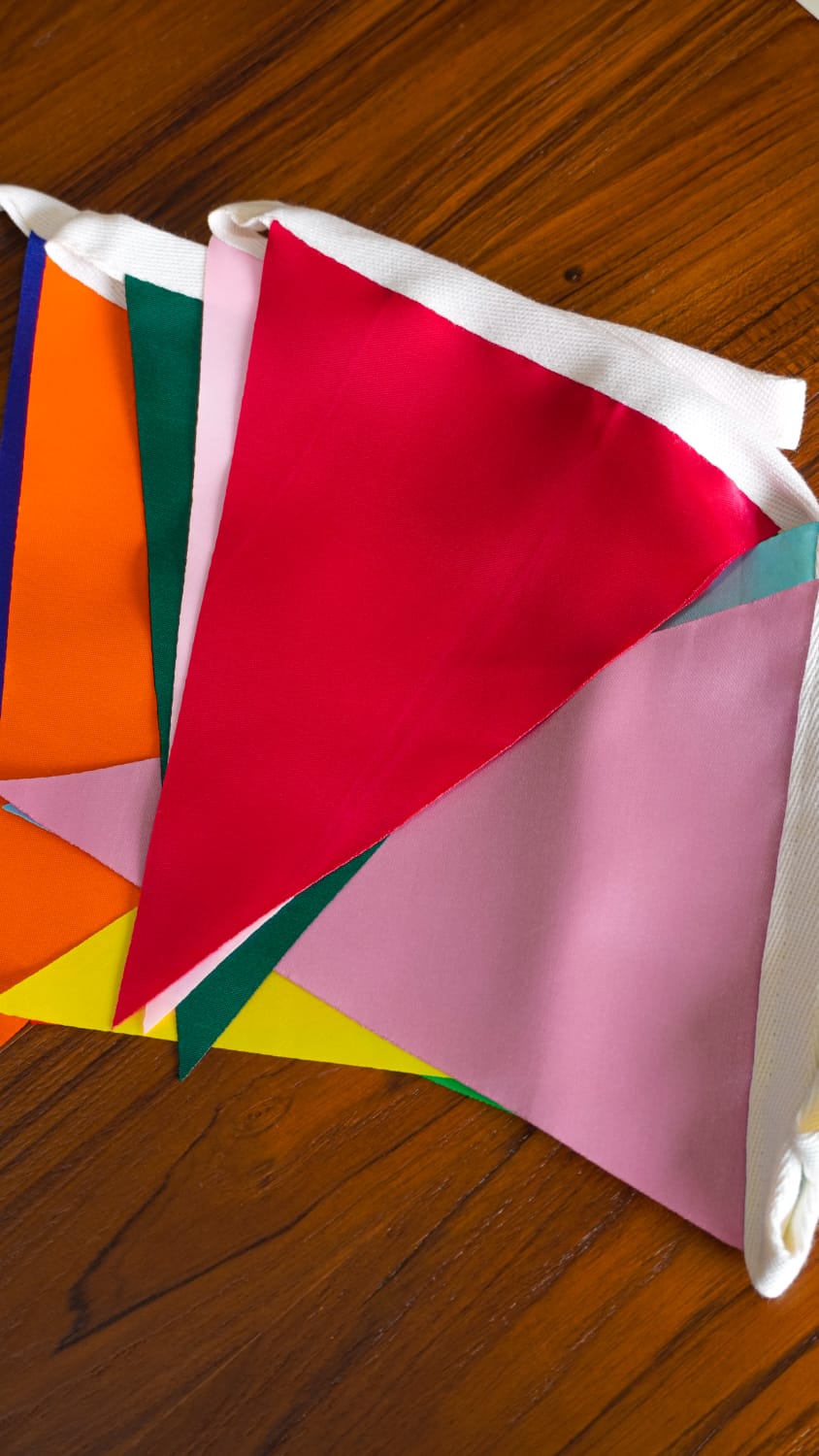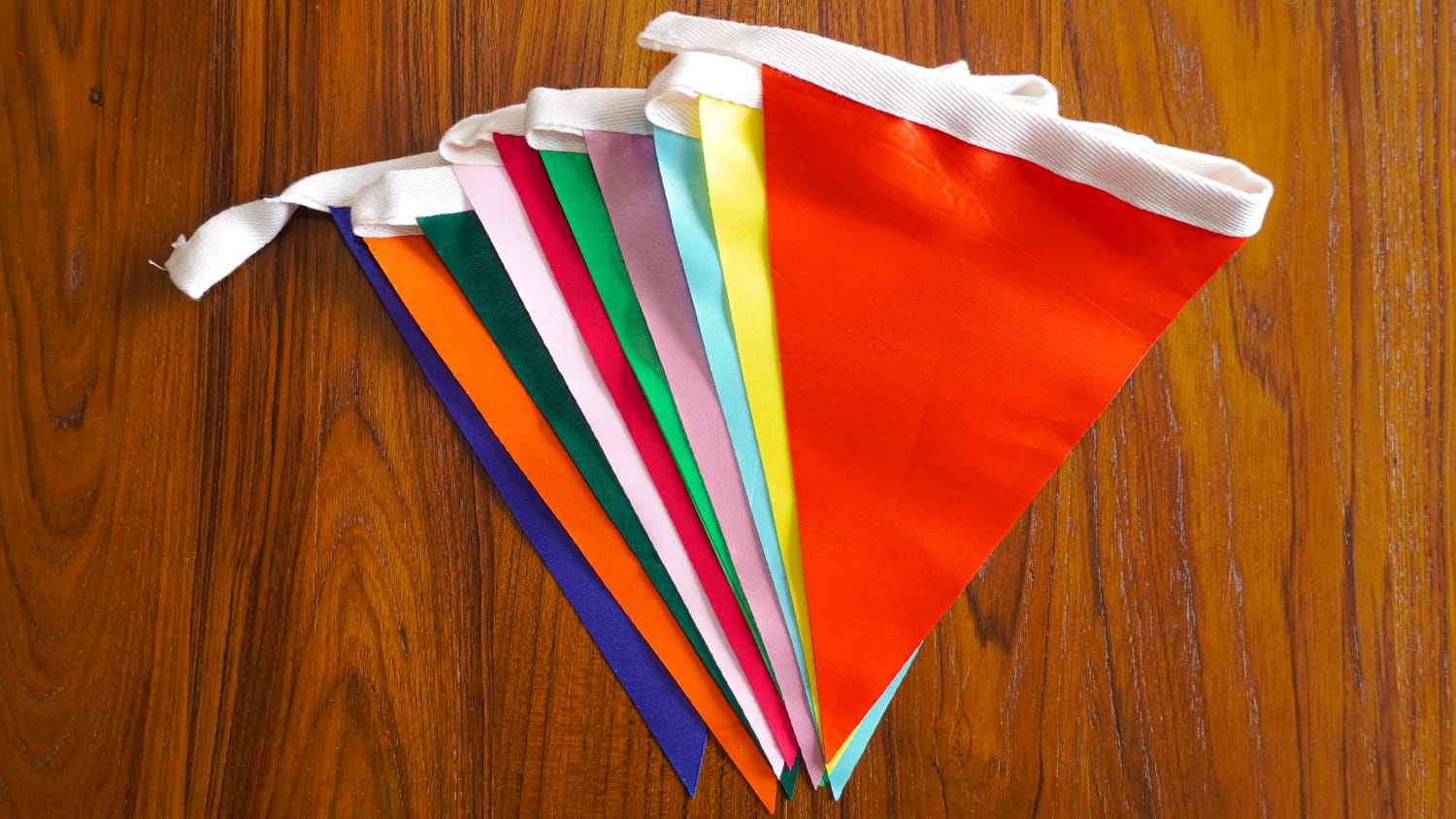 Brighten up your next celebration with our Sustainable Multicolor Satin Triangular Bunting, a premium and eco-friendly decorative choice for parties, weddings, and festive milestones. This horizontal banner features a joyful spectrum of solid-colored flags with a lustrous, high-end finish, providing a sophisticated alternative to disposable plastic bunting.